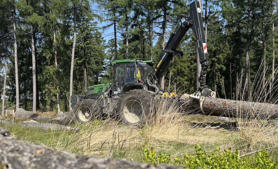 Mit dem Kotschenreuther wird das Langholz (Stämme ab einer Länge von 7m) gerückt und das Kurzholz für den Rückezug an der Gasse vorkonzentriet