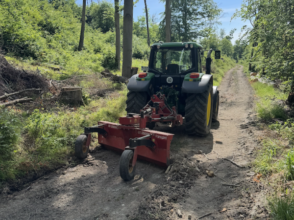 Die Waldwege werden in regelmäßigen Abständen abgezogen, damit das Wasser leichter in den