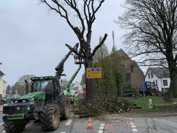 Mit einem Hubsteiger, auch in diesem Fall wird der Baum von obne Stück für Stück, abgetrage.